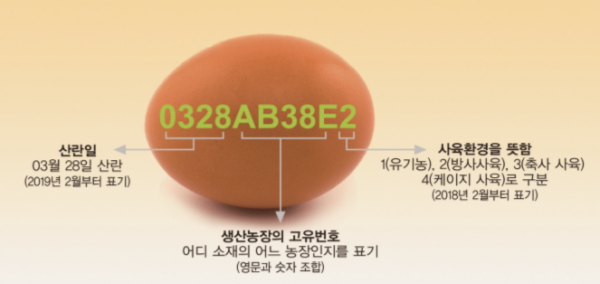 이 숫자는 계란의 산란 일자 사육 환경과 생산자 고유번호 등의 정보를 10자리 숫자 로 나타내어 소비자들이 확인할 수 있도록 했지만 정작 소비자들은 잘 모르시는 분들이 많았습니다.